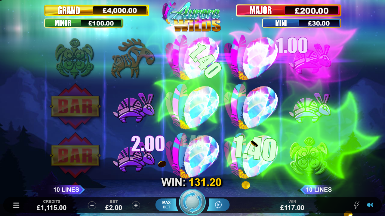 Aurora Wilds is a 10 line game with pays in both directions and 5 x 3 reels. Wilds expand upon landing